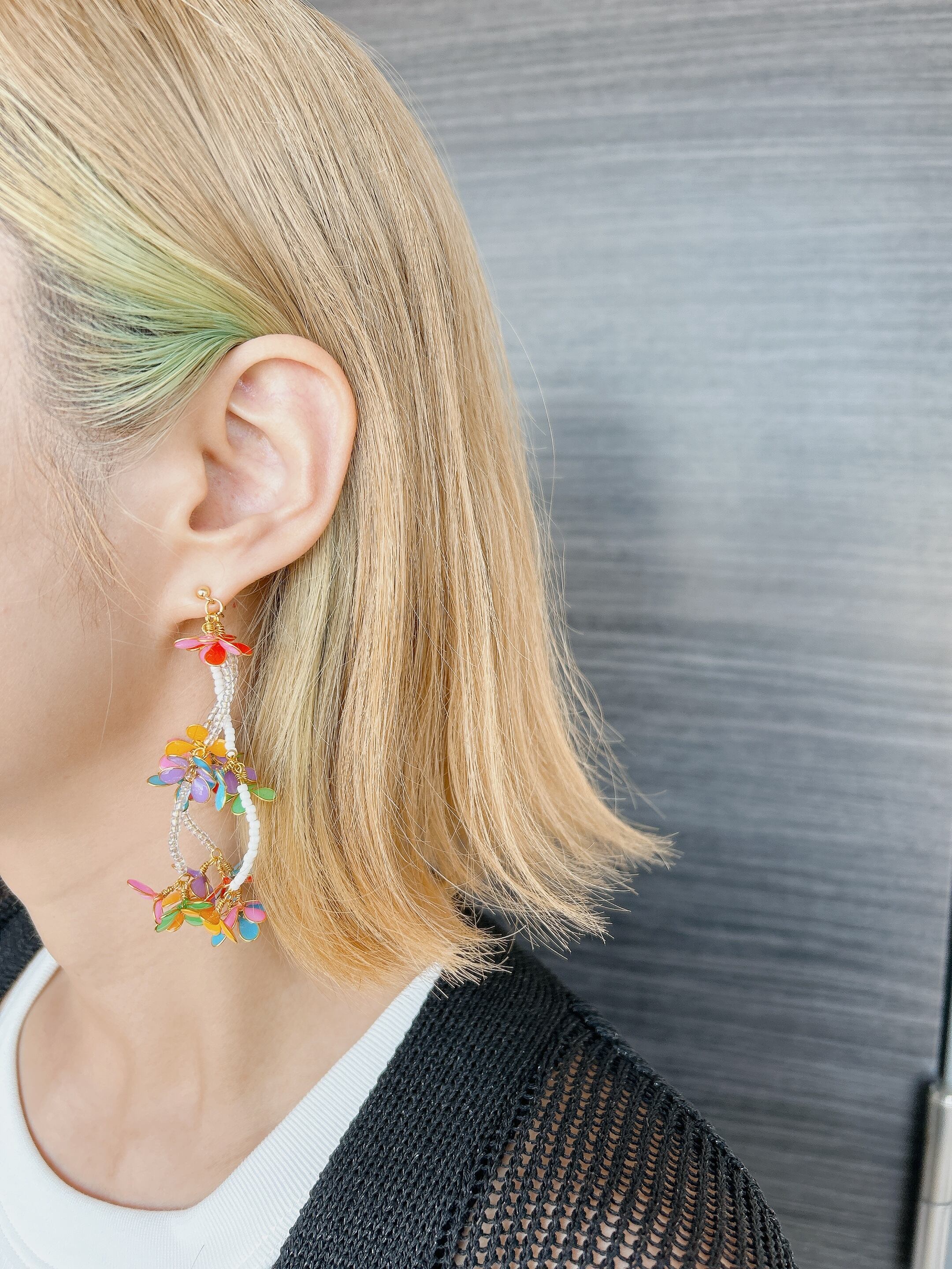 ワイヤーとマニキュアを使って作られたカラフルアクセサリーは、まるで小さなアートのようです。繊細なワイヤーの曲線と、多彩な色合いが生み出す美しいコントラストが魅力です。